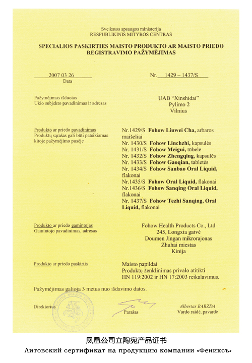 ЛИТОВСКИЙ СЕРТИФИКАТ КАЧЕСТВА