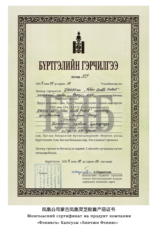 МОНГОЛЬСКИЕ СЕРТИФИКАТЫ КАЧЕСТВА
